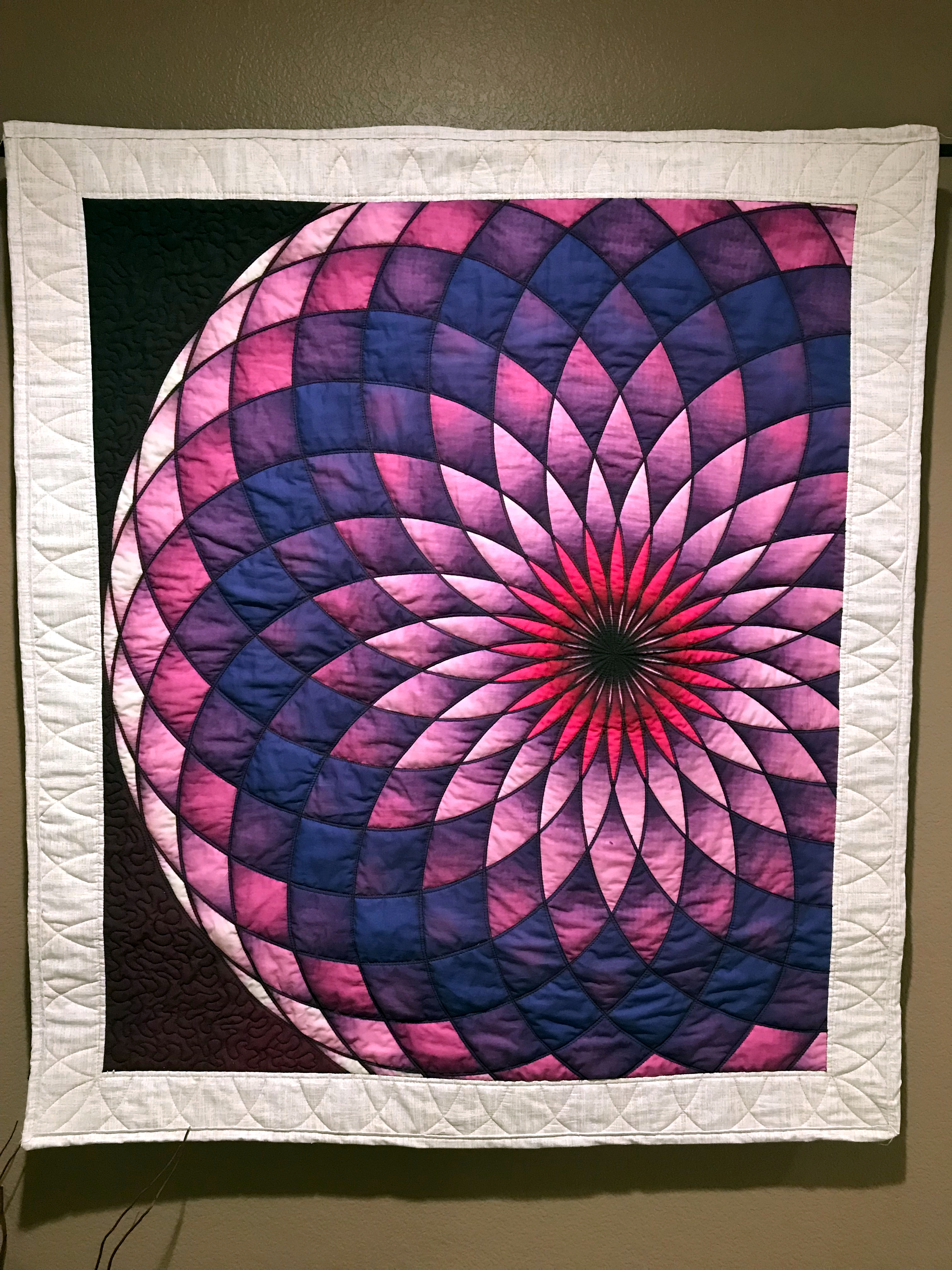The image was created and colored on a computer, I had the image printed to fabric and then quilted.